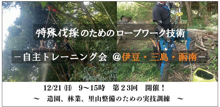 ≪特殊伐採のためのロープワーク技術 自主トレーニング会 伊豆・三島・函南 開催のお知らせ≫